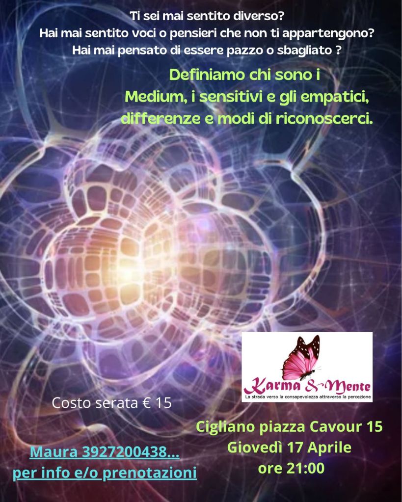 Passa una serata in presenza di Medium e Sensitivi ,, avrai le risposte che cerchi . Prenotazione obbligatoria al 3927200438