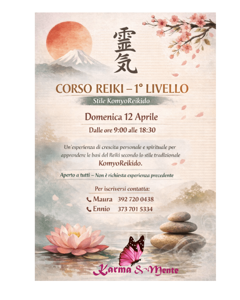 Corso di 1 livello Reiki stile komyoreikido, per apprendere lo stile orientale del Reiki.