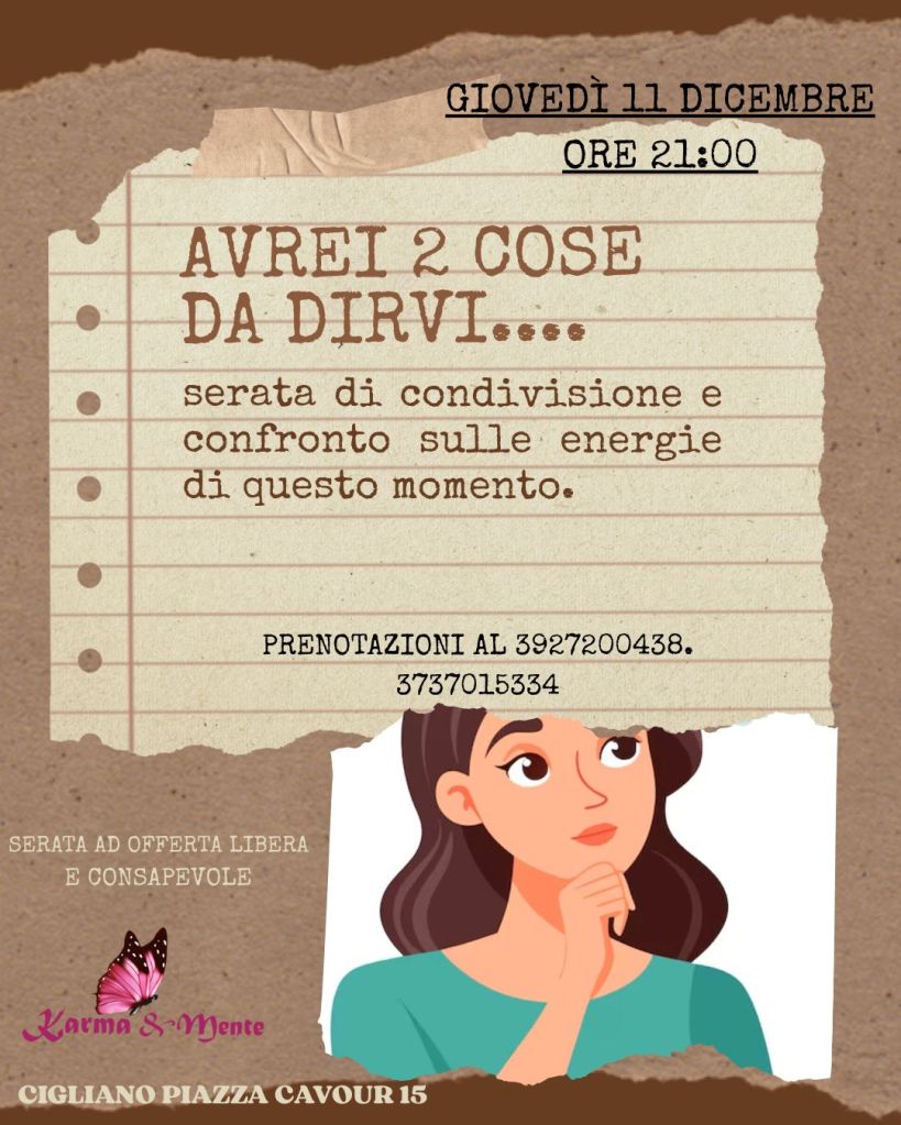 Mercoledì 14 Gennaio dalle ore 21 da Karma e mente a Cigliano in piazza Cavour 15. Prenotati al 3927200438