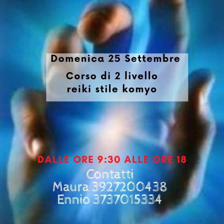 Domenica 25 settembre dalle 9:30 alle 18 corso di 2 livello reiki stile komyo a cigliano (VC)