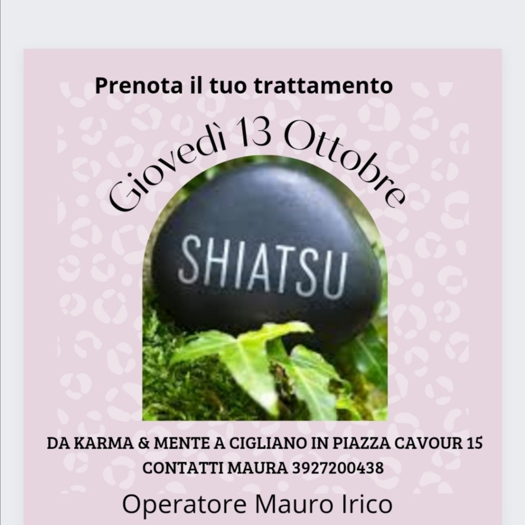 Prenota il tuo trattamento personale di shiatsu martedì 27 luglio presso karma & mente, operatore Mauro Irico.