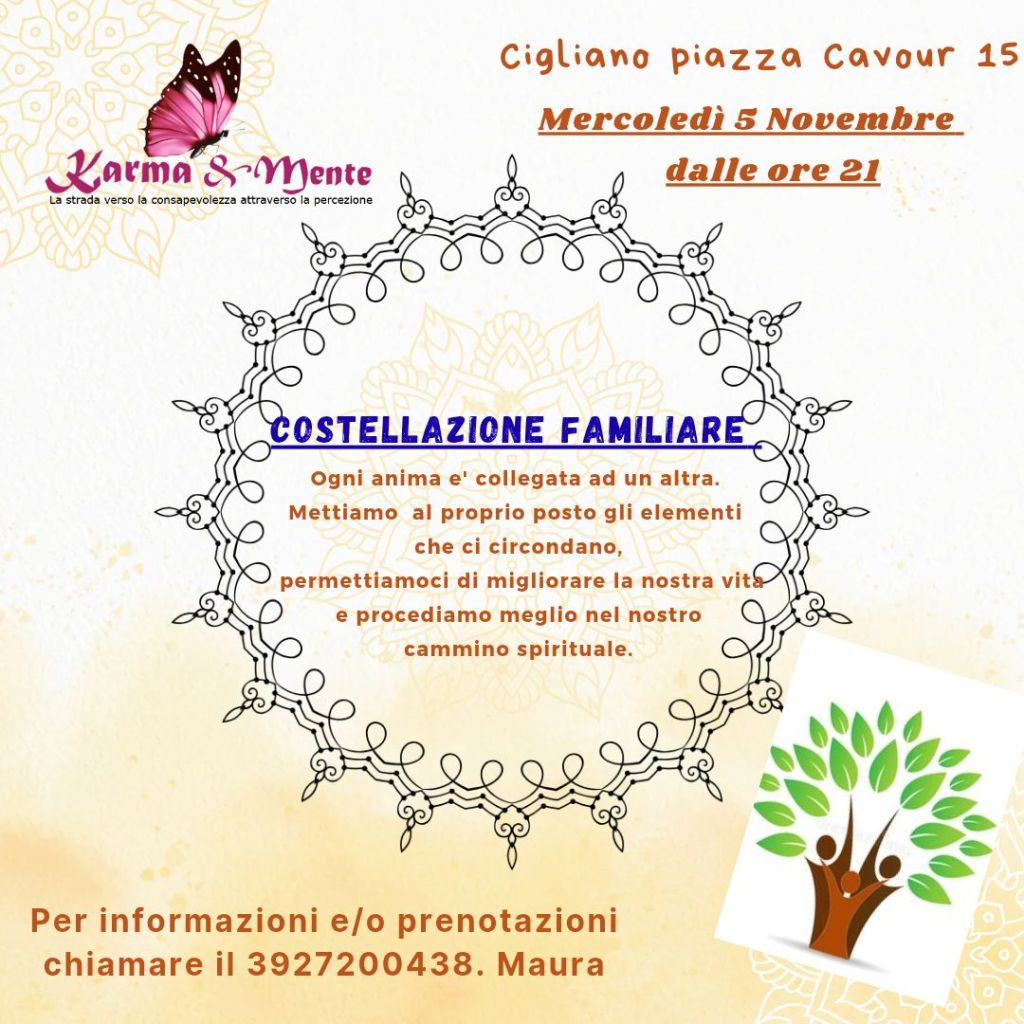 Elimina dinamiche ed eventi che bloccano la tua vita, sciogli le energie che non desideri più, attraverso la costellazione di mercoledì 5 novembre ore 21 da Karma e mente. Prenotazione obbligatoria al 3927200438