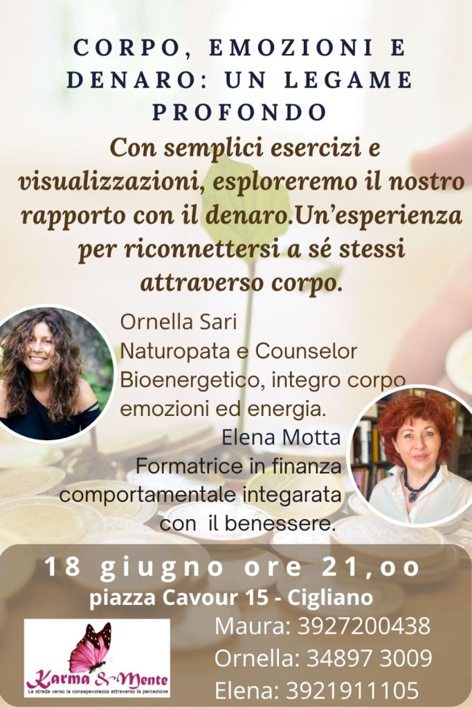 Ospiti da #karma& mente , Elena Motta esperta in finanza, Ornella Sari naturopata e Counselor presentano l unione tra corpo emozioni e denaro. Prenotazione obbligatoria al 3927200438