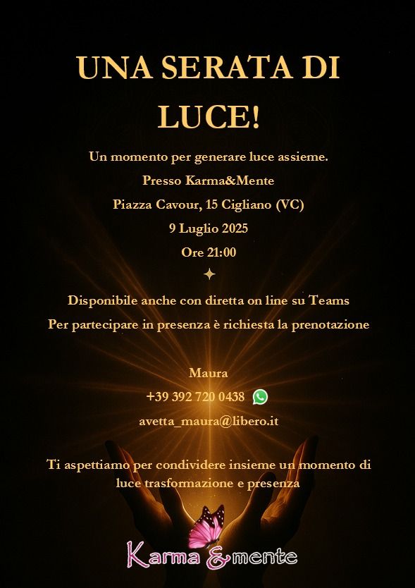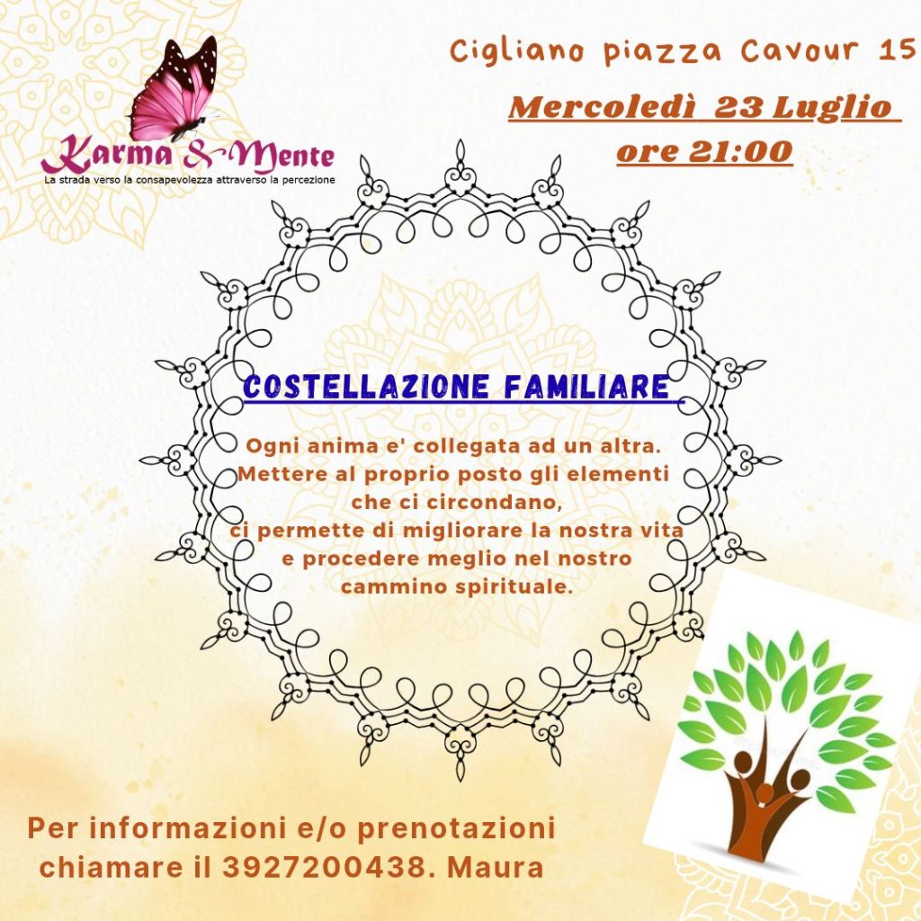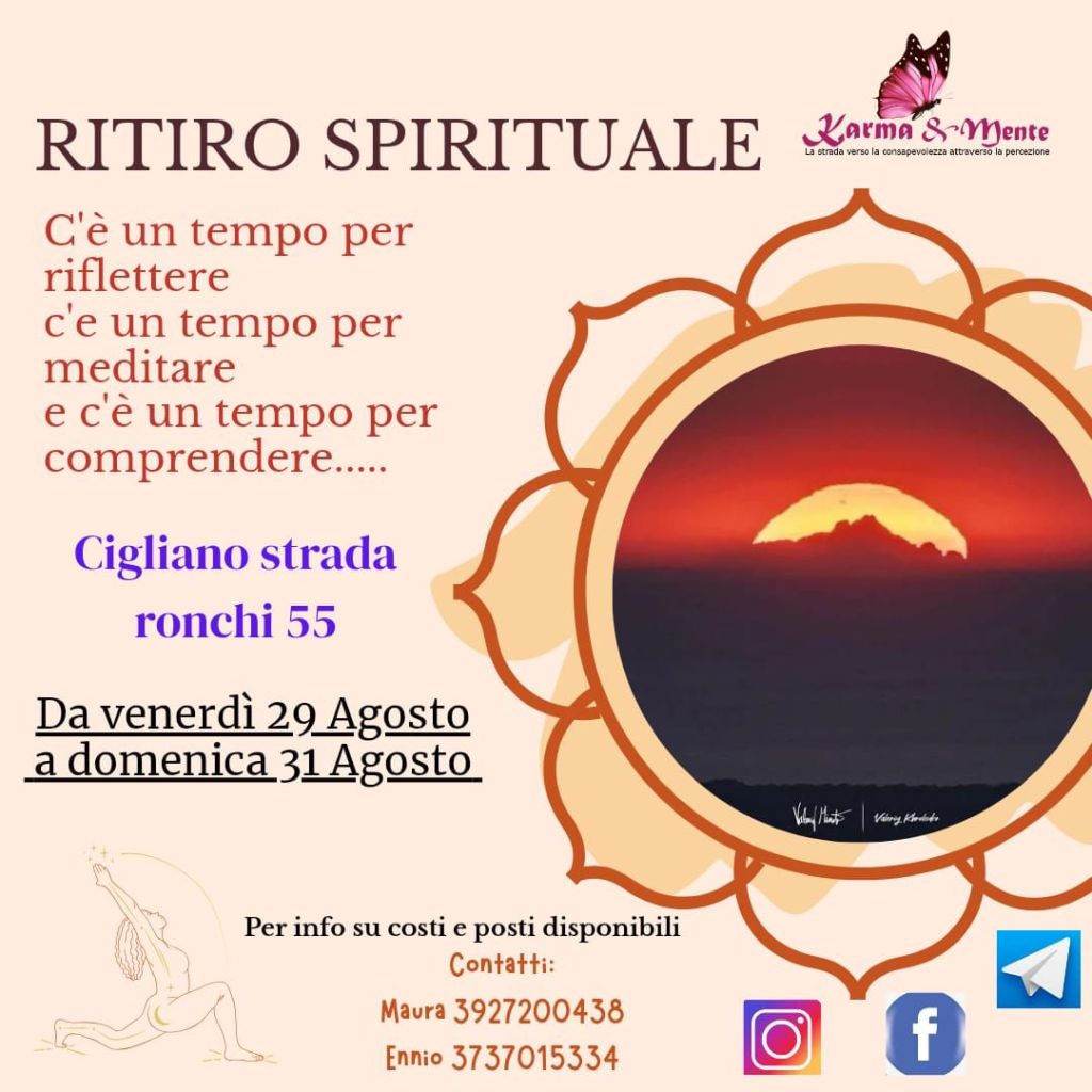 Karma&Mente propone di trascorrere un tempo prezioso, vissuto con l’intento di portare al livello di coscienza le verità che restano nascoste dentro i cuori … per riconoscere che non sei quello che pensano di te le tue abituali frequentazioni … sei molto di più di quello che tu puoi anche solo immaginare !!!